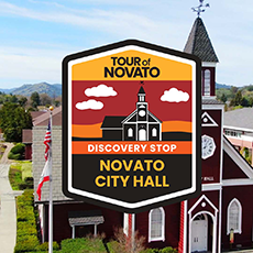 Novato's City Hall is located at the intersection of DeLong and Sherman Ave. in a building that was originally the Novato Presbyterian Church. Currently, the City Hall serves as a meeting space, while the City Administration Building located across the green from City Hall houses many of the city offices. The patio at City Hall has many bricks that were purchased by community members with special dedications. There are also bricks honoring past local leaders. Can you find anyone you know listed on a brick? You can find out more about the City of Novato, services offered to residents, and find out about some of the community members who have been honored by the Novato Proud program on the City of Novato website.